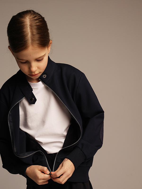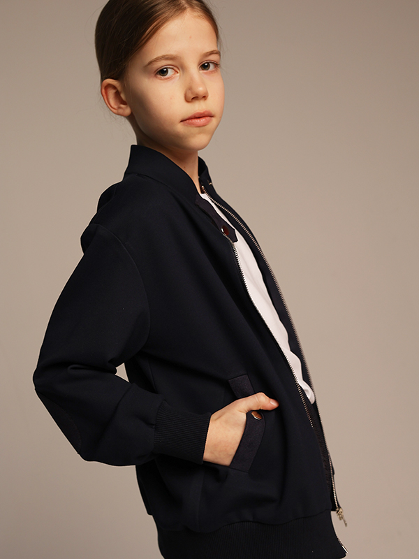 Стильный и практичный синий школьный бомбер из джерси, специально созданный для активных и стильных девочек.
