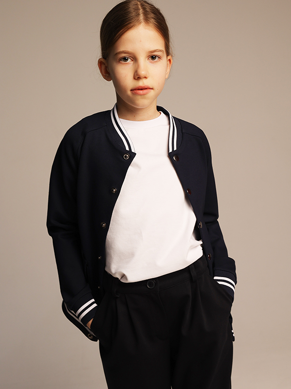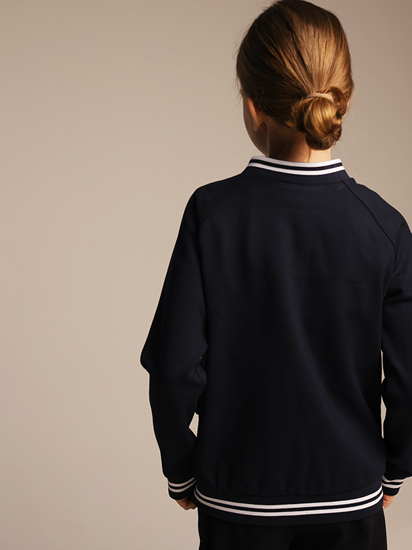 Стильный и практичный синий школьный бомбер из джерси, специально созданный для активных и стильных девочек.
