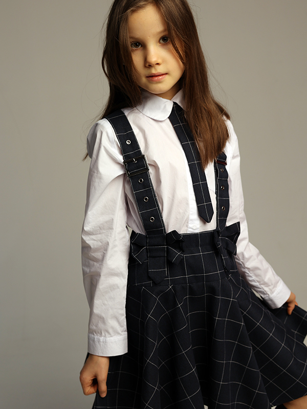 Нарядная белая школьная блузка рубашечного кроя с клетчатым галстуком