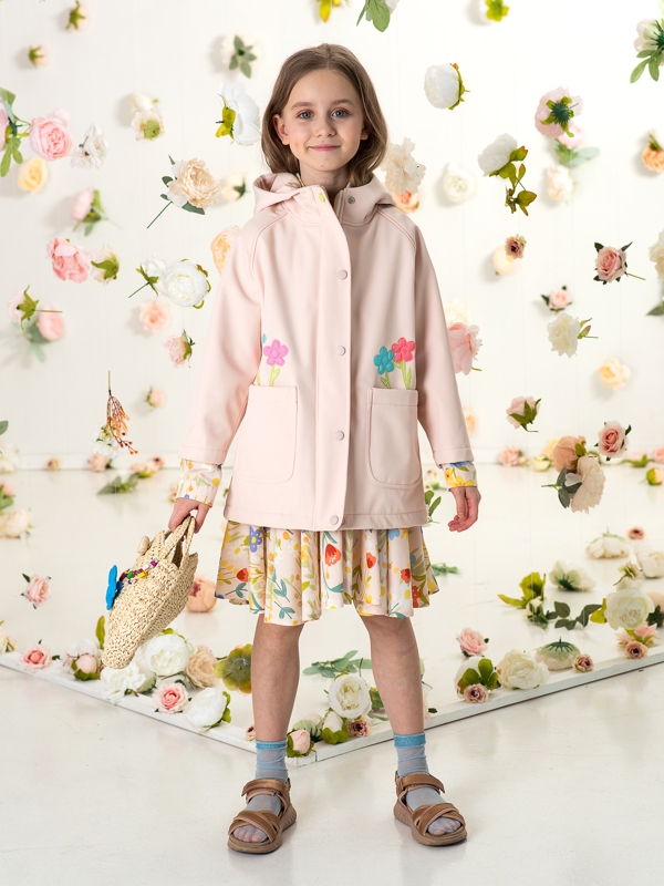 Розовая утепленная ветровка сделана из двухслойного материала софтшелл с мембраной и мягкой флисовой подкладкой. В ней будет тепло и комфортно в прохладную погоду, при этом она остается легкой. Удобный капюшон защитит от ветра, а объемные карманы украшены милыми цветами.