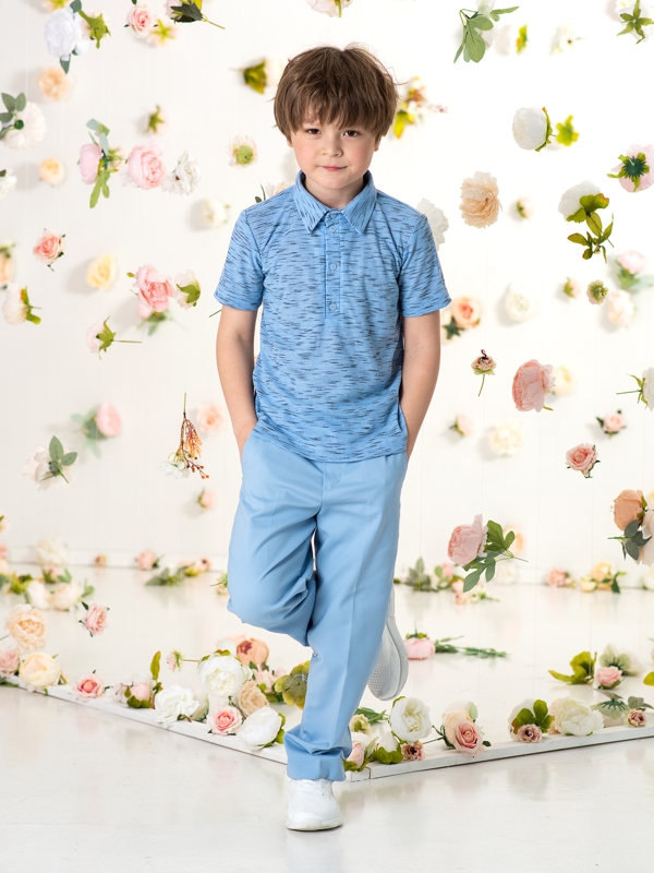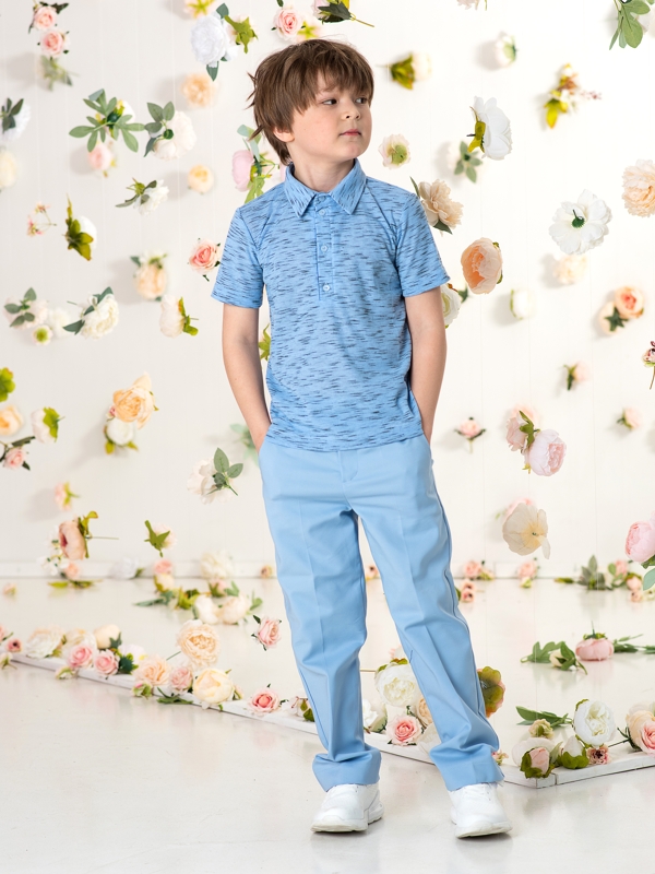 Поло из мягкой ткани в рубчик голубой меланж с застежкой на пуговицах