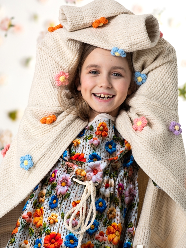 Талию можно отрегулировать с помощью кулиски с оригинальным плетеным хлопковым шнуром, который украшен милыми вязаными цветами в тон платью. Этот детское платье с цветами идеально подойдет для детского сада, прогулок и повседневных дел.