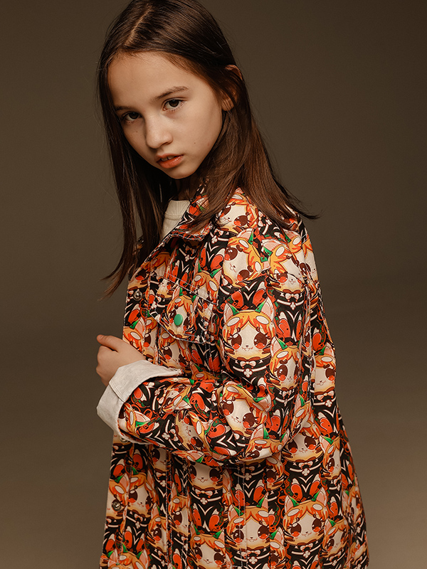 Оранжевая детская джинсовая куртка для девочек с аниме-принтом в уличном стиле